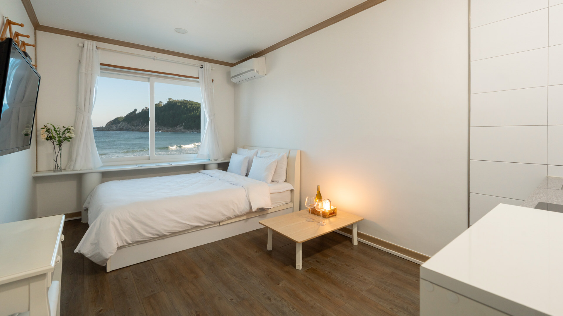 끝없이 펼쳐지는 바다를 한눈에 담을 수 있으며, 창문 너머로 스며드는 부드러운 바람과 잔잔한 파도 소리가 마음 깊은 곳까지 편안함을 선사합니다.