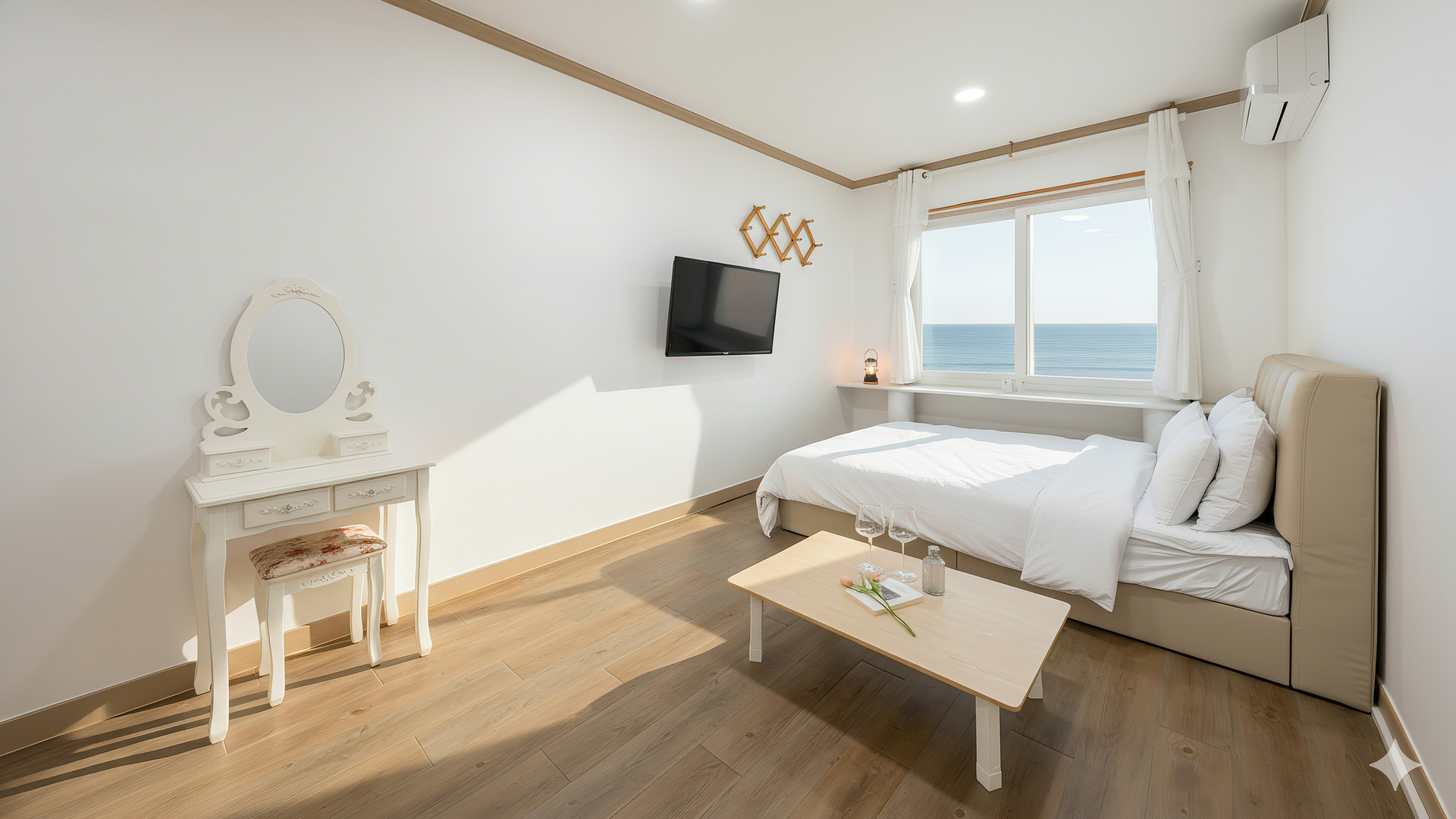 끝없이 펼쳐지는 바다를 한눈에 담을 수 있으며, 창문 너머로 스며드는 부드러운 바람과 잔잔한 파도 소리가 마음 깊은 곳까지 편안함을 선사합니다.